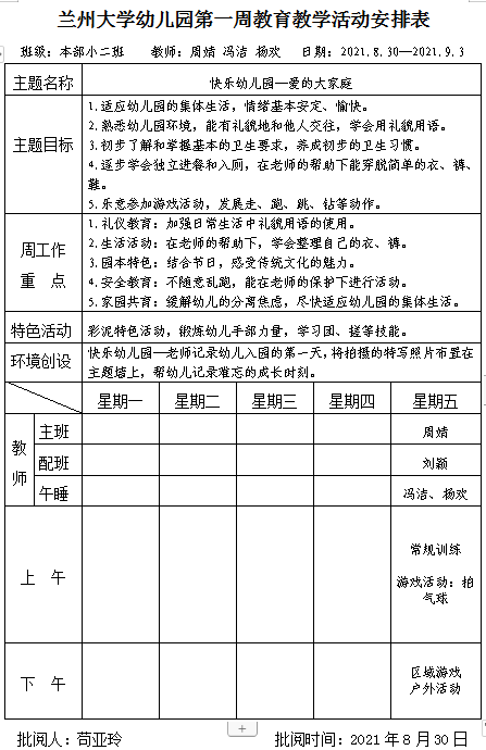 本部小三班2021年9月第一周