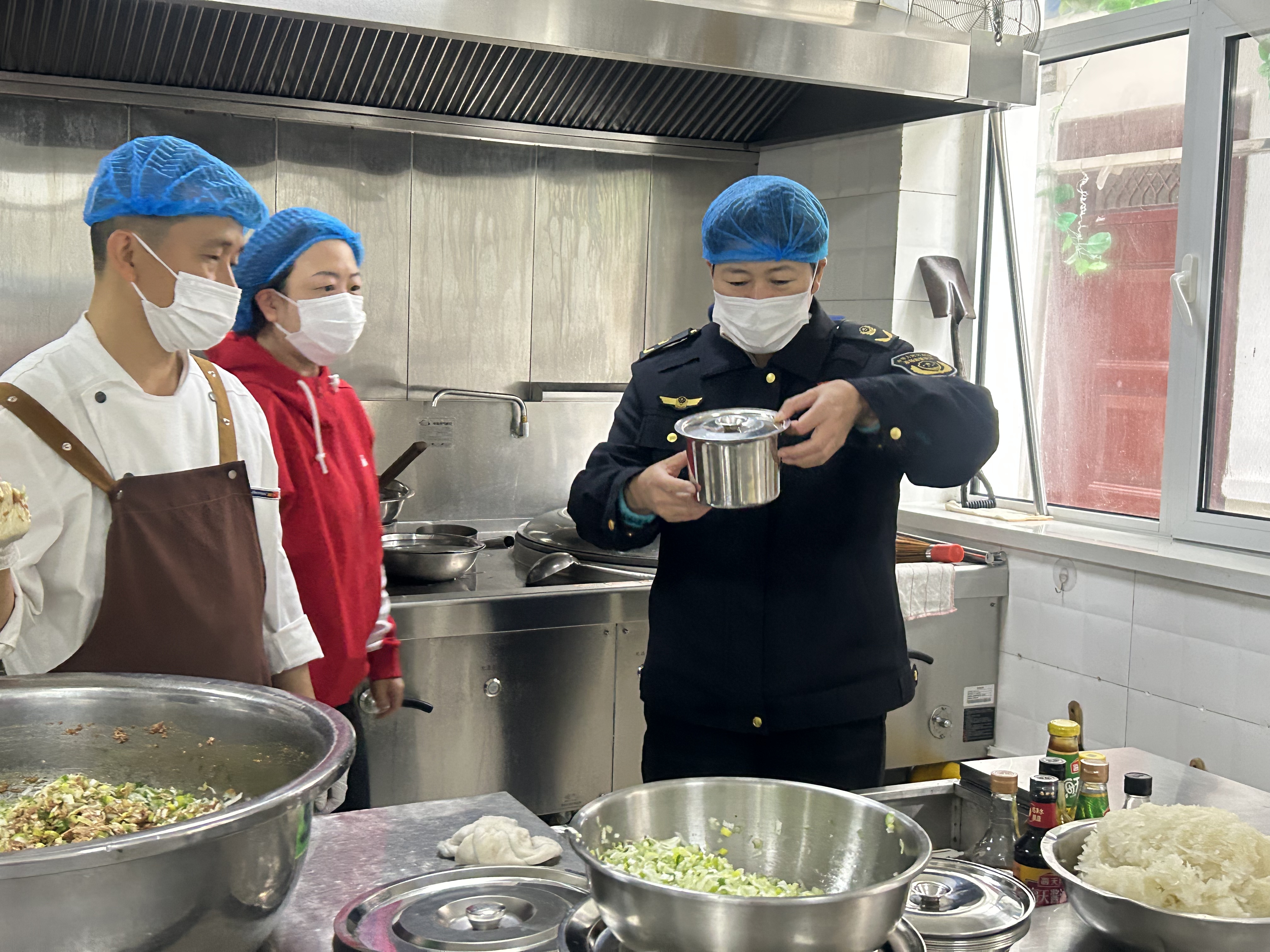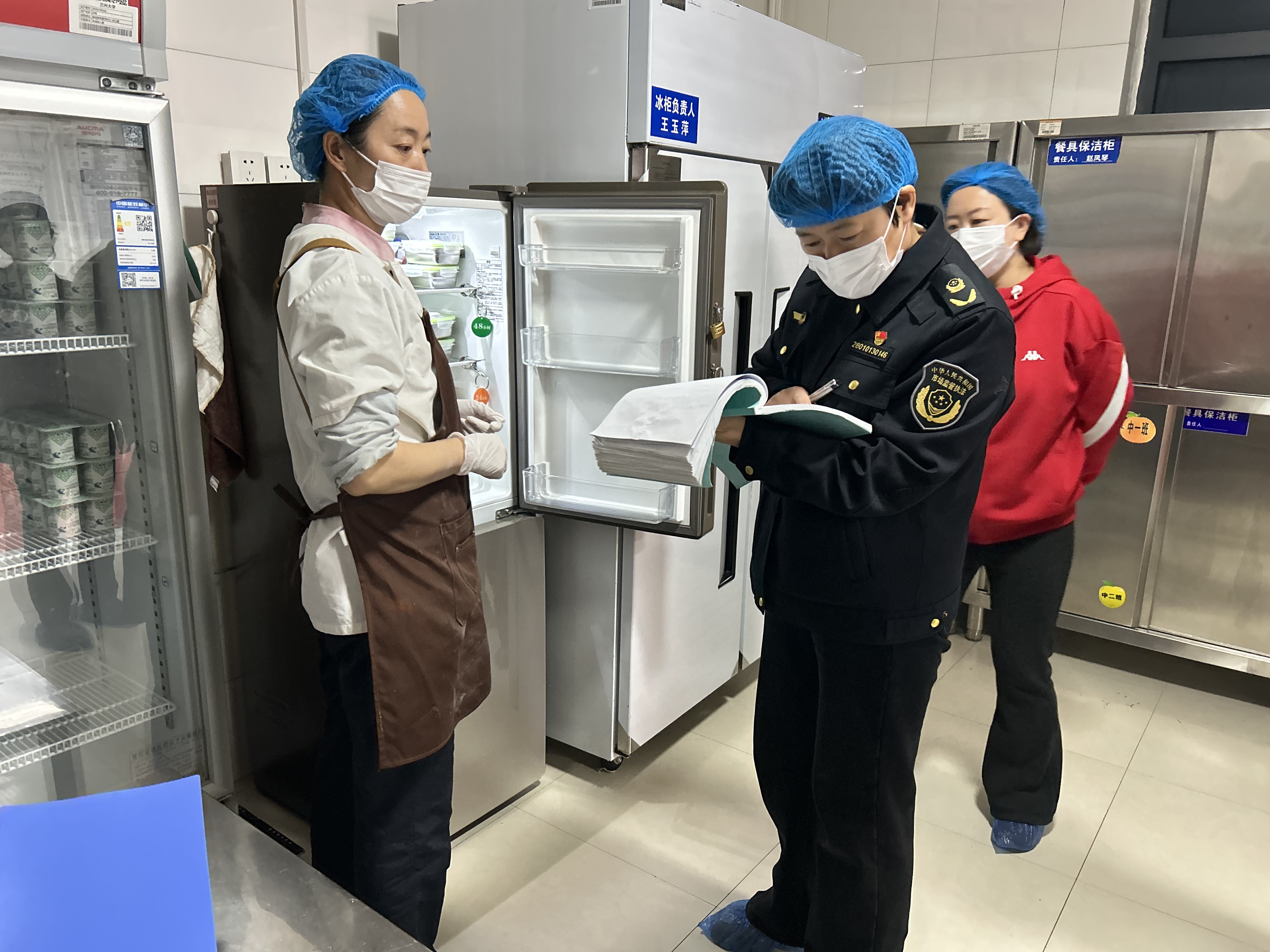 督导组一行进入厨房区域,仔细查看了食品留样、餐具消毒及各类记录,并对幼儿园在此方面的工作成效给予了认可。随后,对消防安全设施、防暴器械等进行了细致查验,安保器材配备与视频监控系统运行状况也是本次检查的重点内容。